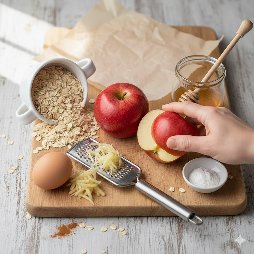 Paso 1: Preparar la manzana Ralla la manzana muy fina. Tip Pro: Si suelta mucho jugo, escurre solo un poco, pero no del todo. Ese líquido es vital para que las galletas queden jugosas y no secas.