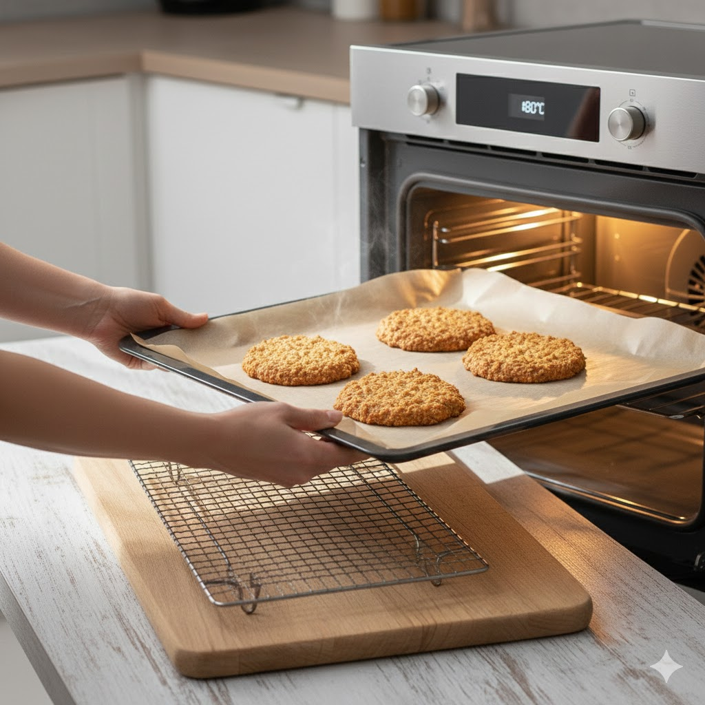 Paso 6: Enfriar Al salir del horno estarán un poco blandas. Déjalas reposar unos minutos; al enfriarse ganarán la consistencia perfecta.